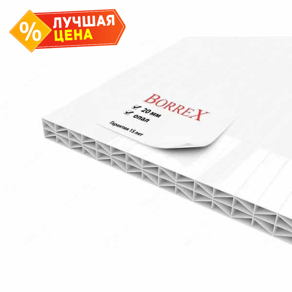 Сотовый поликарбонат 20 мм BORREX опал 2100х6000 мм