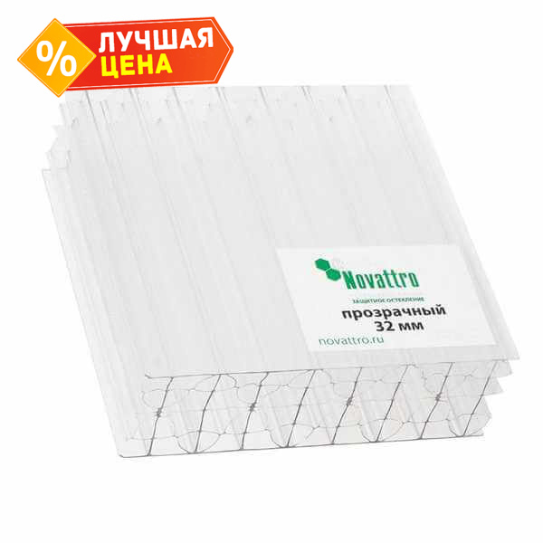 Сотовый поликарбонат 32 мм NOVATTRO прозрачный 2100х6000 мм