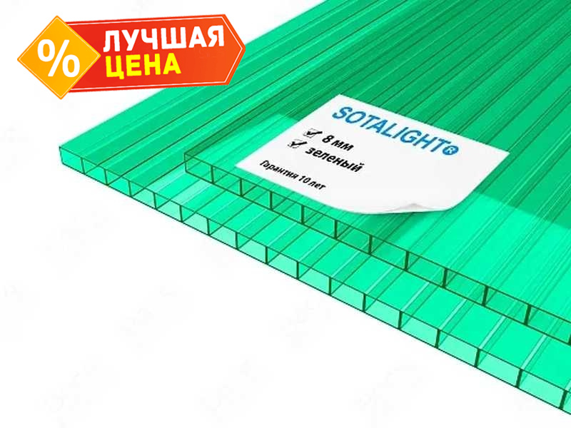 Сотовый поликарбонат 8 мм SOTALIGHT зелёный 2100х12000 мм