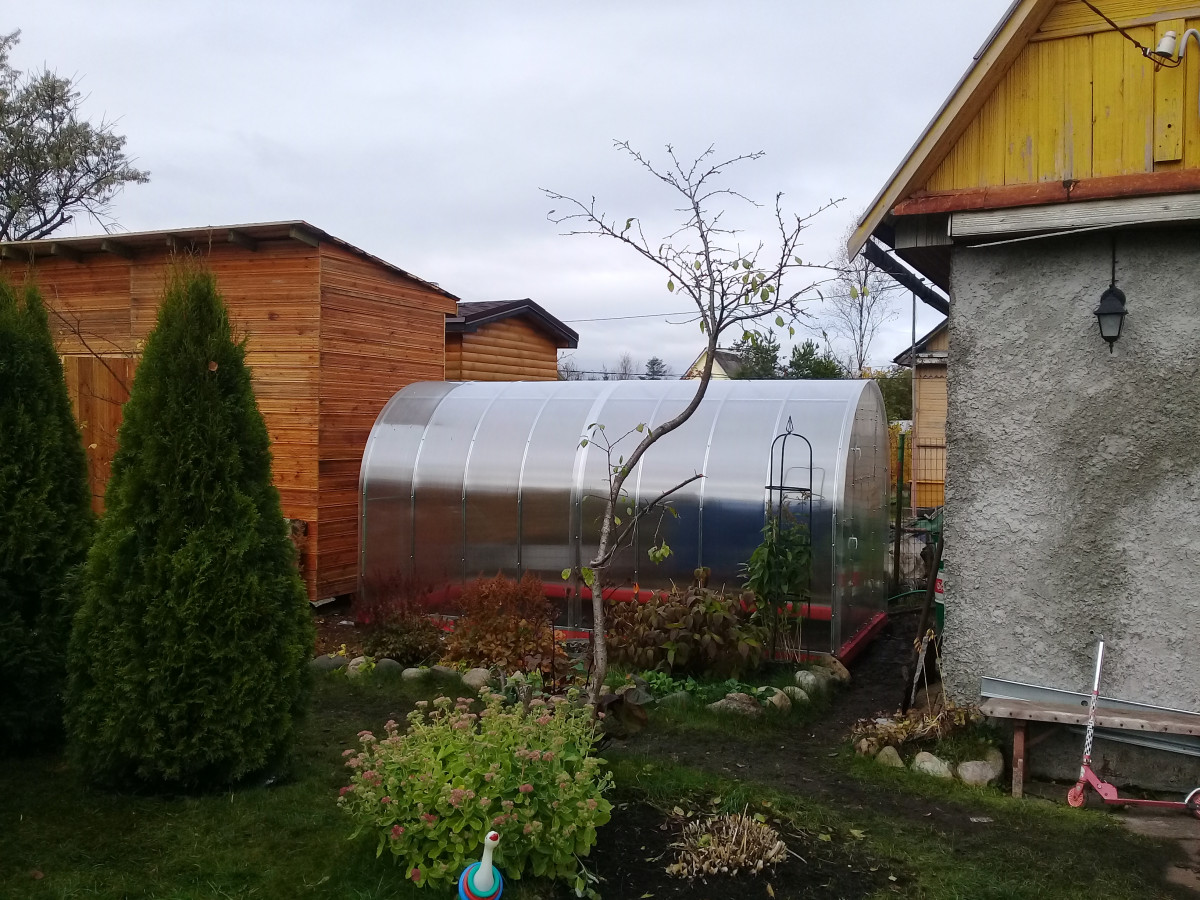 • практически прямые боковые стороны теплицы позволяют использовать пространство по максимуму и выращивать культуры, плотно прилегающие к стенкам