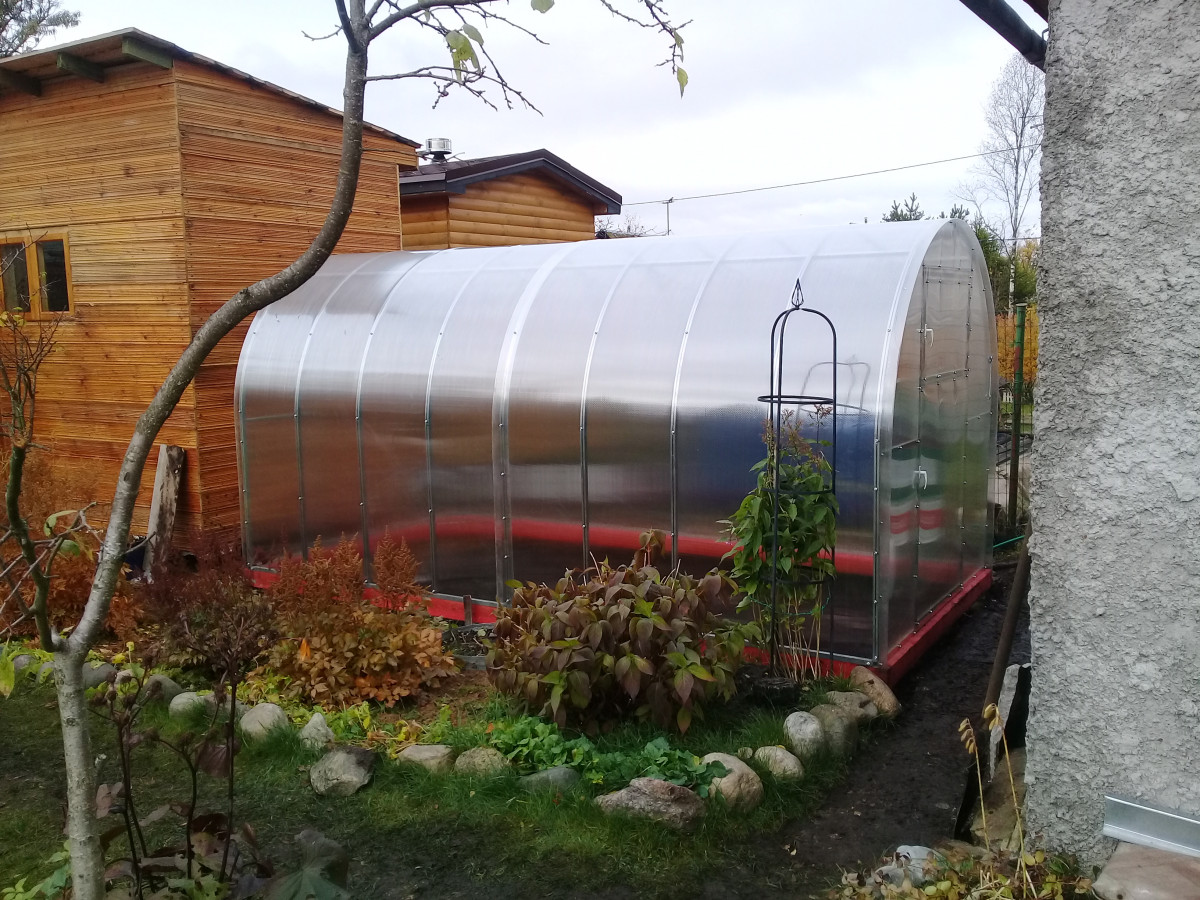 • узкая арочная конструкция с крутым скатом препятствует скоплению снега в зимний период