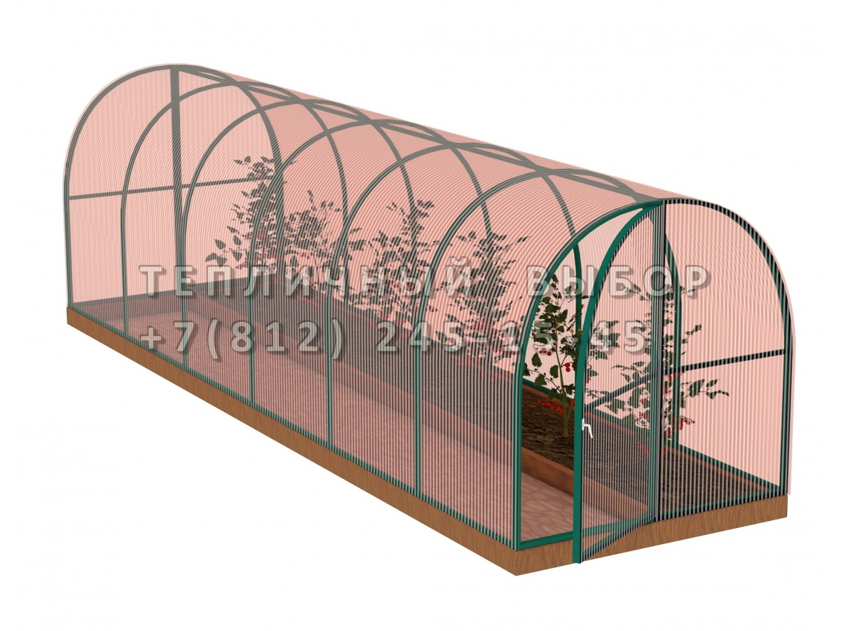 Теплица из поликарбоната-фито Арочная 1,6х6 h=1.68 м профиль 20х20 мм Зеленый