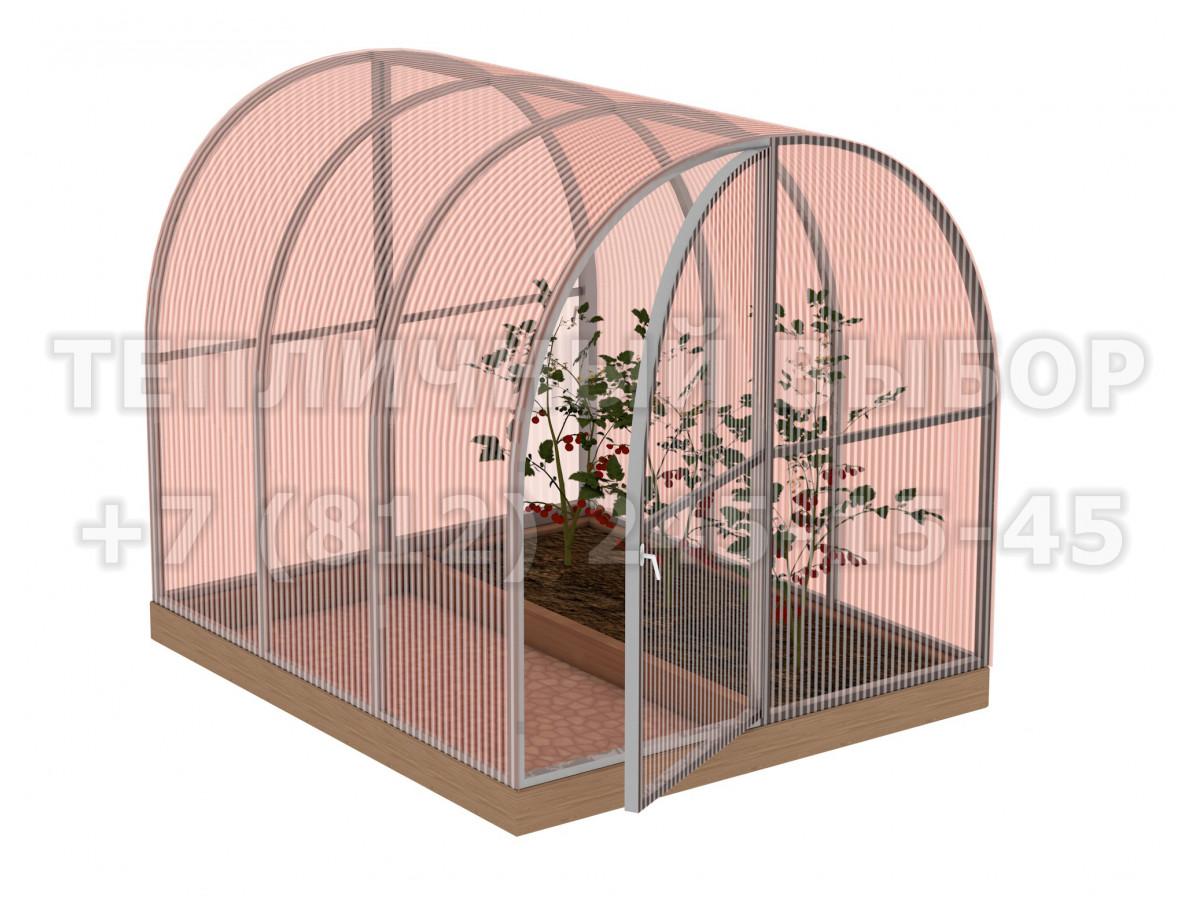 Теплица из поликарбоната-фито Усиленная Арочная 1,6х2 h=1.68 м профиль 20х20 мм