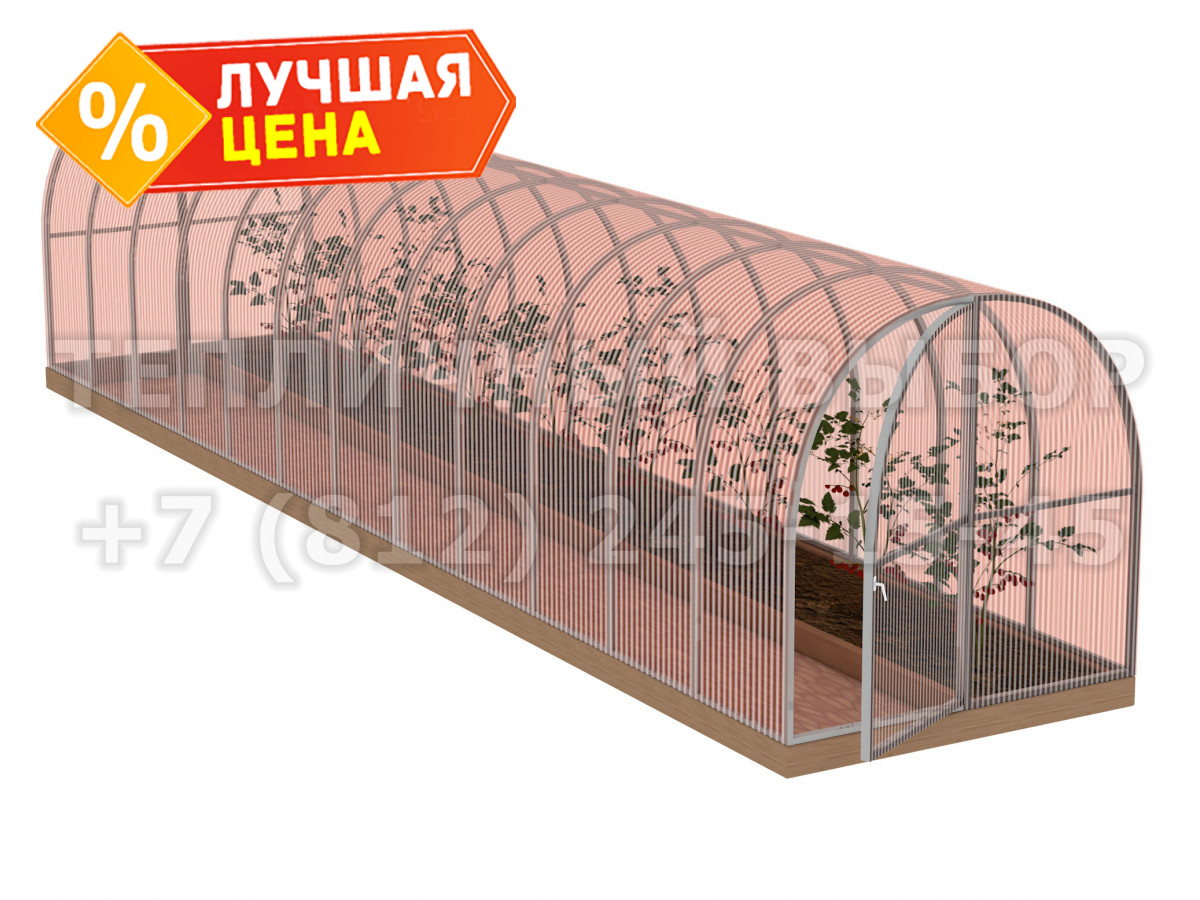 Теплица из поликарбоната-фито Усиленная Арочная 1,6х8 h=1.68 м профиль 20х20 мм