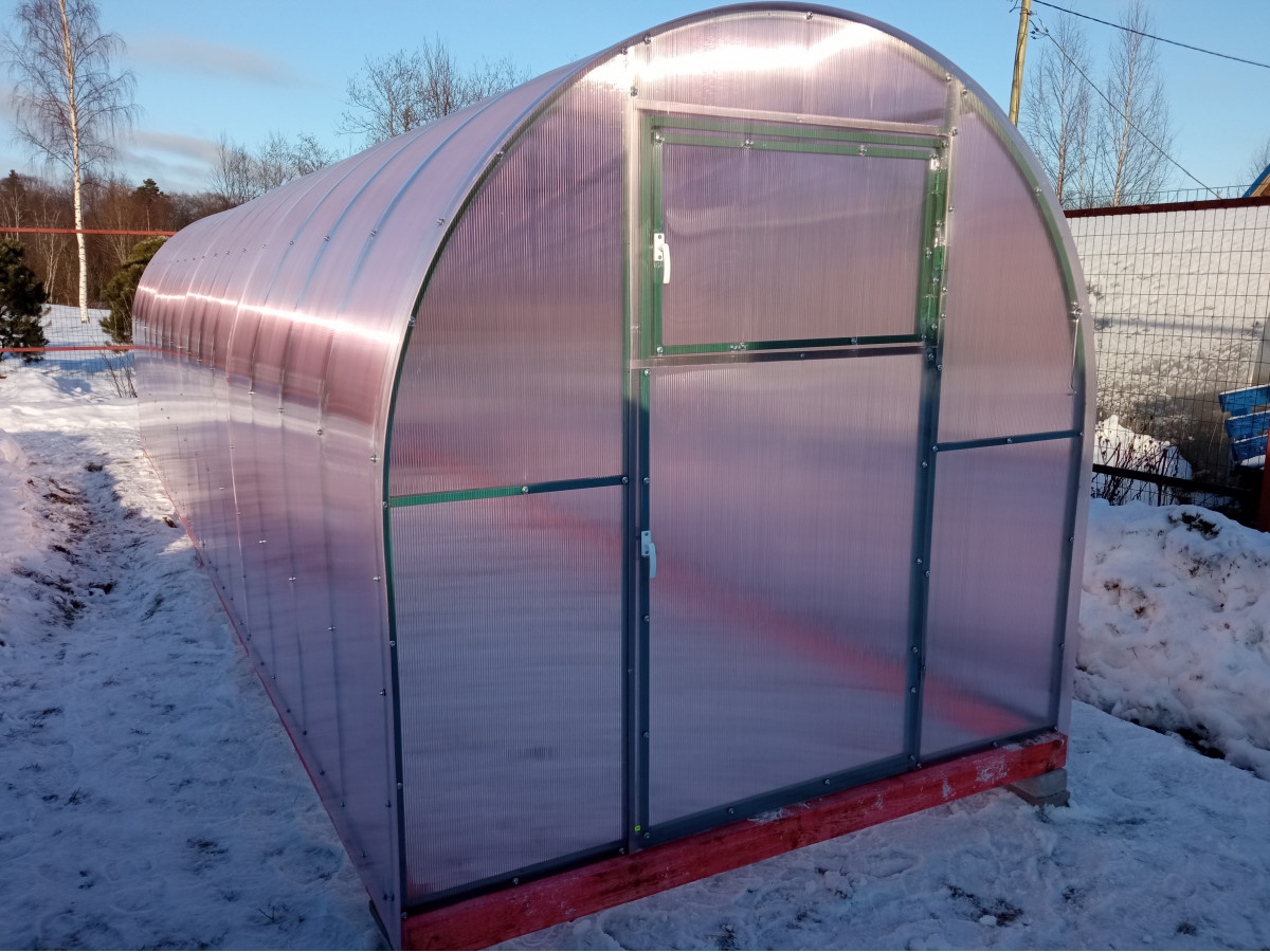 Теплица из поликарбоната-фито Усиленная Арочная 2,1х4 h=2 м профиль 25х25 мм Зеленый