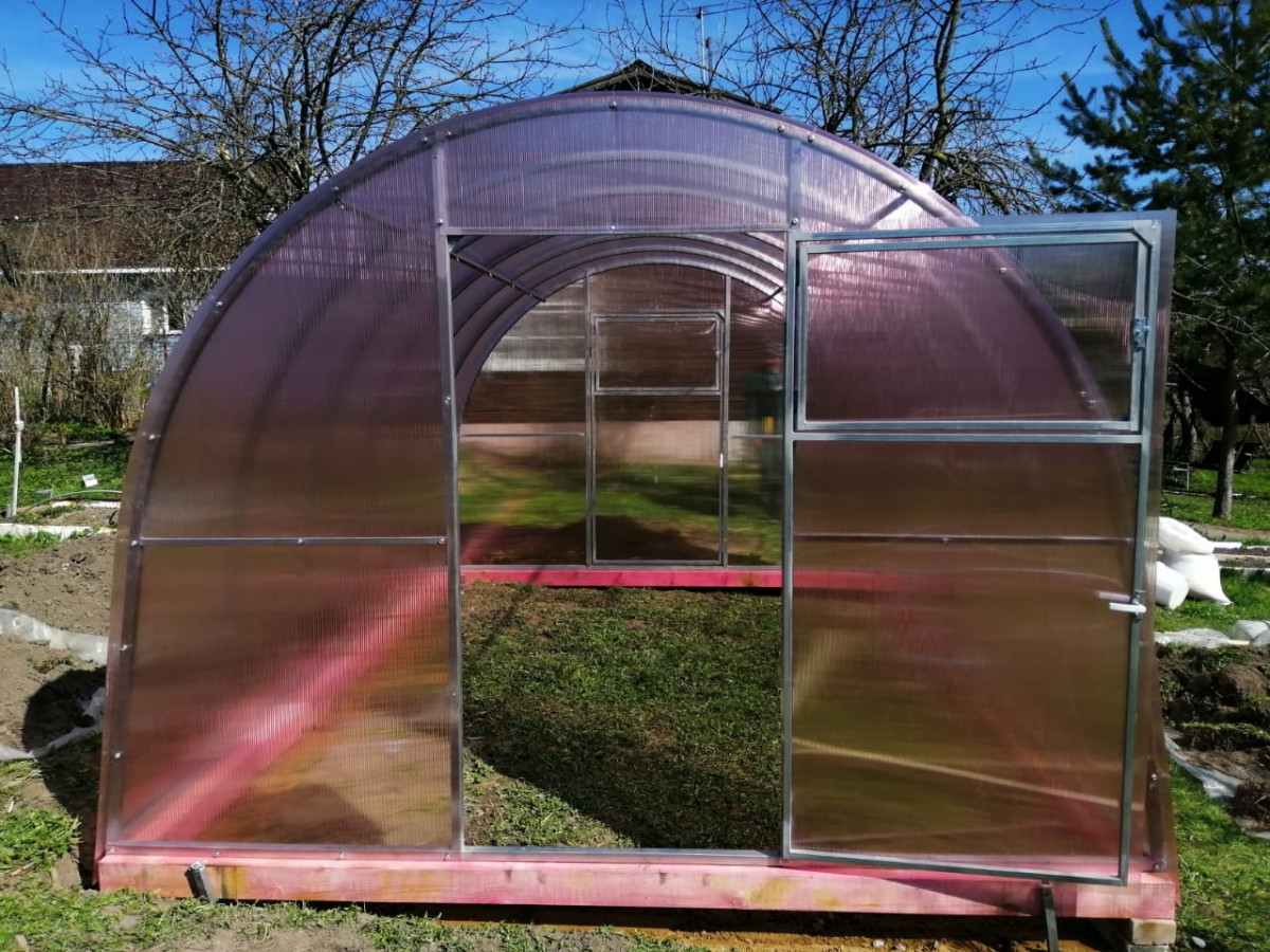• практичный каркас с дверьми в каждом торце обеспечивает легкий доступ в теплицу и её проветривание