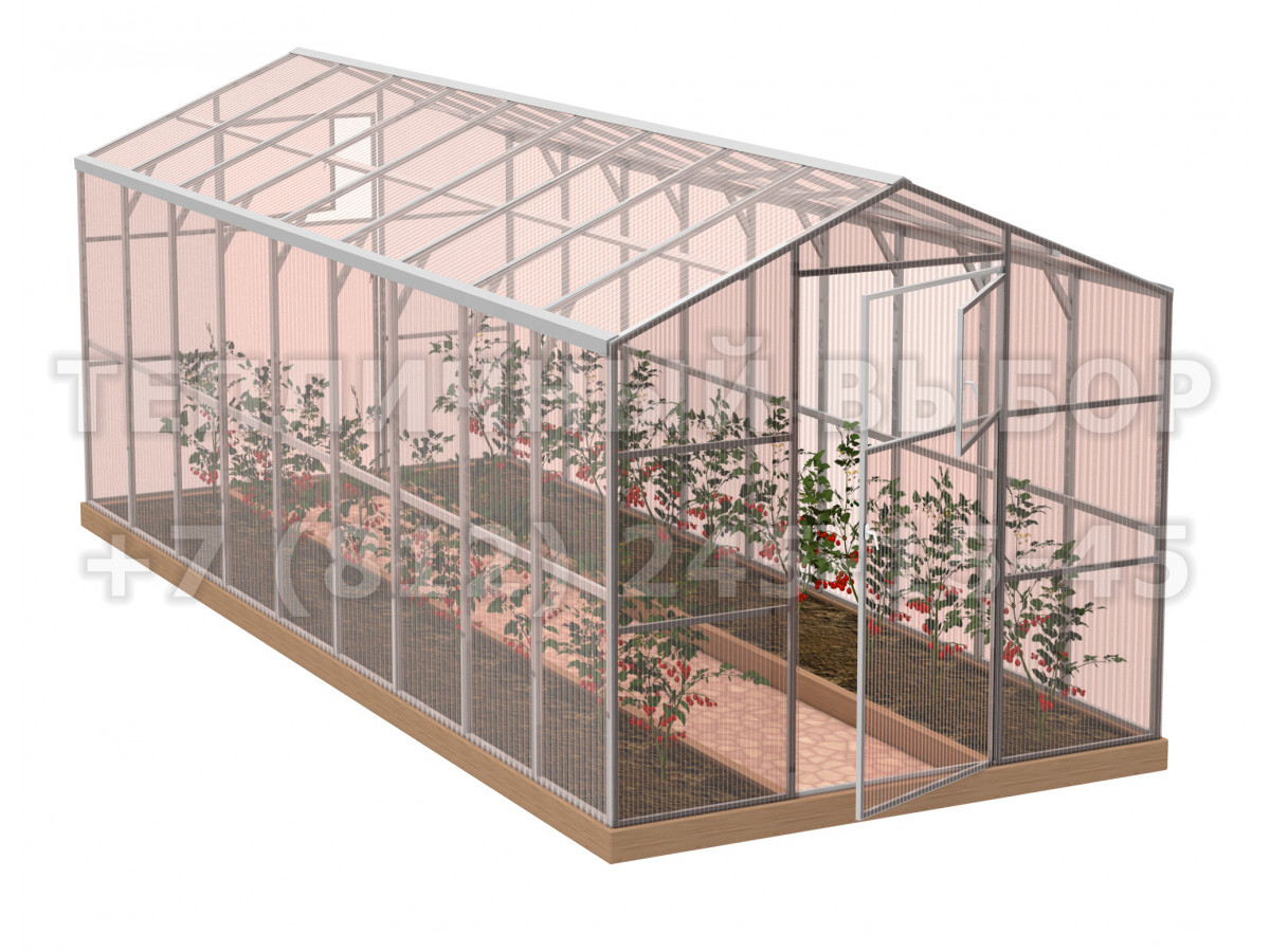 Теплица из поликарбоната-фито Усиленная Домиком 2,3х6 h=2.1 м профиль 25х25 мм