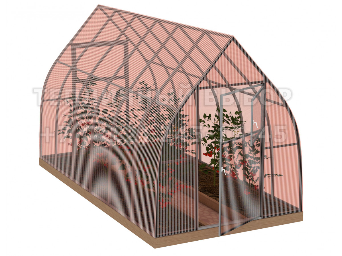 • практичная конструкция с дверьми в каждом торце обеспечивает легкий доступ в теплицу и её проветривание