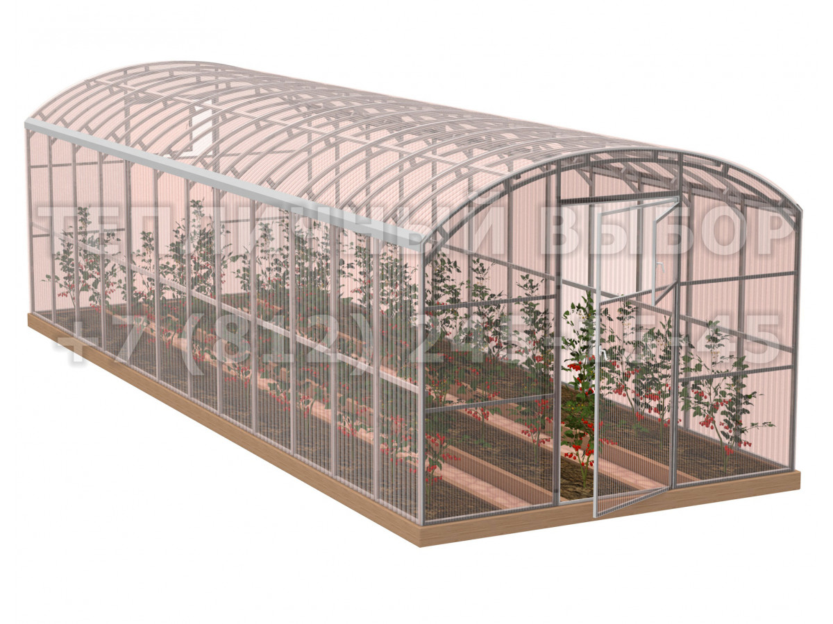 Теплица из поликарбоната-фито Усиленная Прямостенная 2,5х10 h=2.1 м профиль 20х40 мм