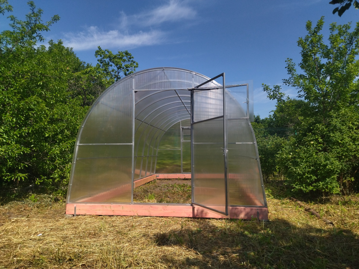 • прочная за счет частой установки дуг в теплице (междуговое расстояние 65 см) и оптимального сечения профильной трубы (25х25 мм)