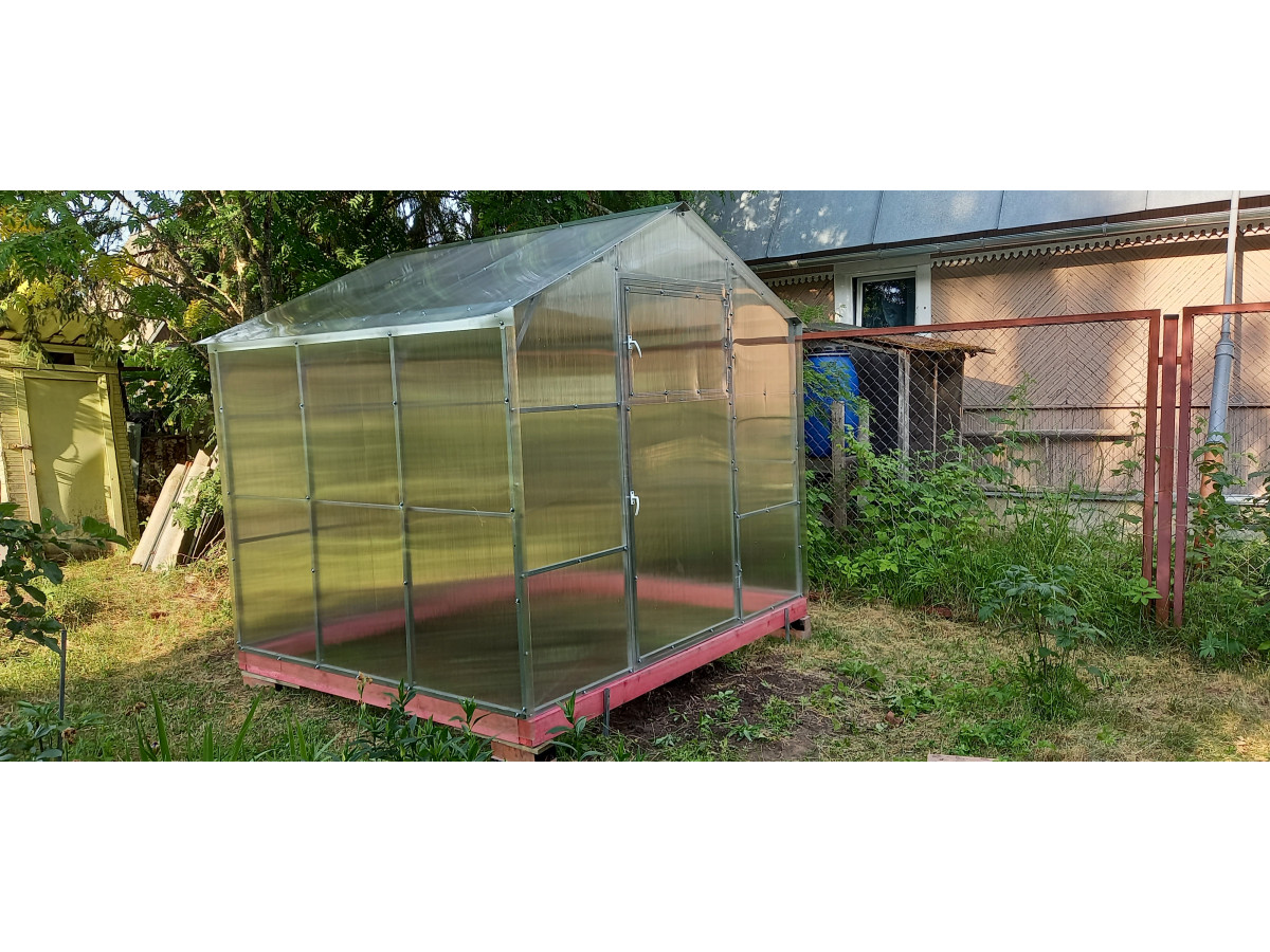 • практичный каркас с дверьми и форточками в каждом торце обеспечивает легкий доступ в теплицу и её проветривание;