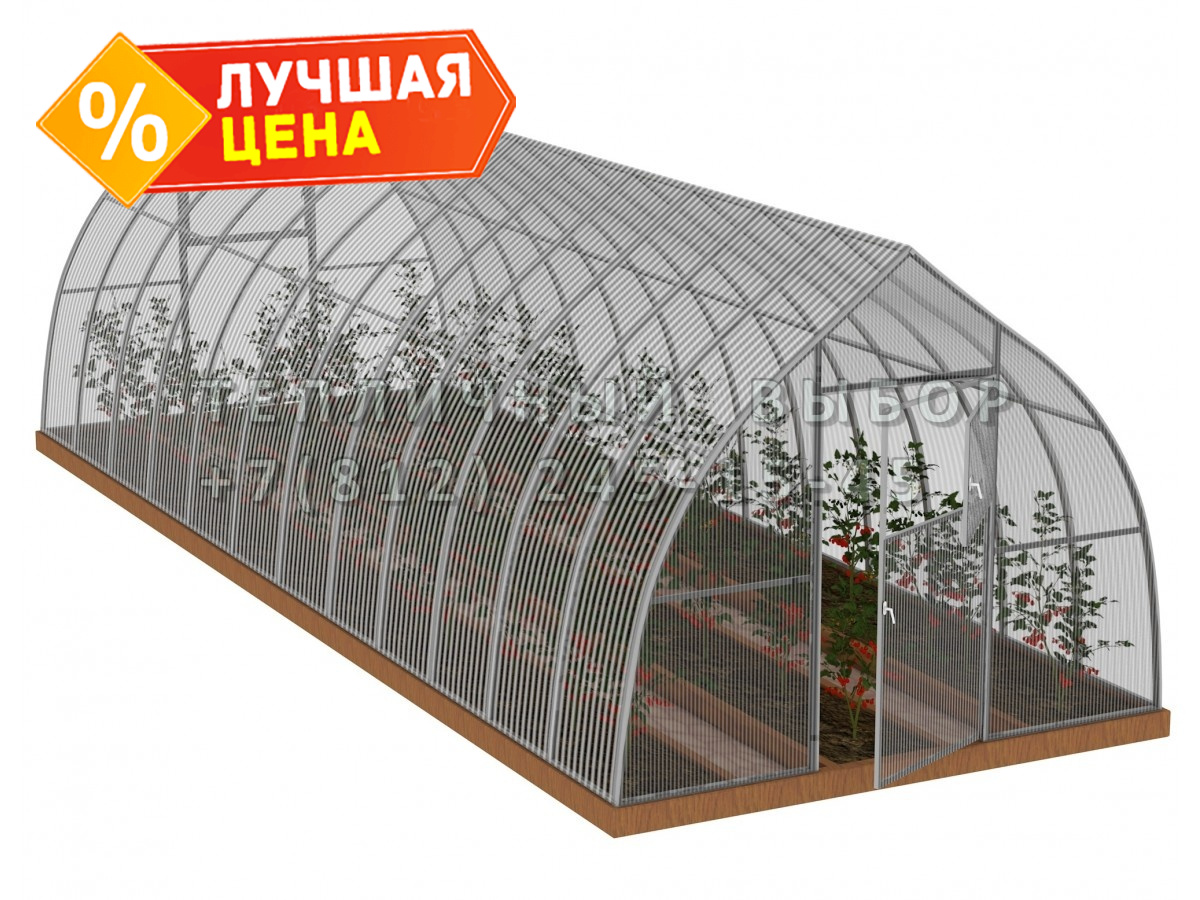 Теплица из поликарбоната Усиленная Капелька 3х10 h=2.3 м профиль 25х25 мм