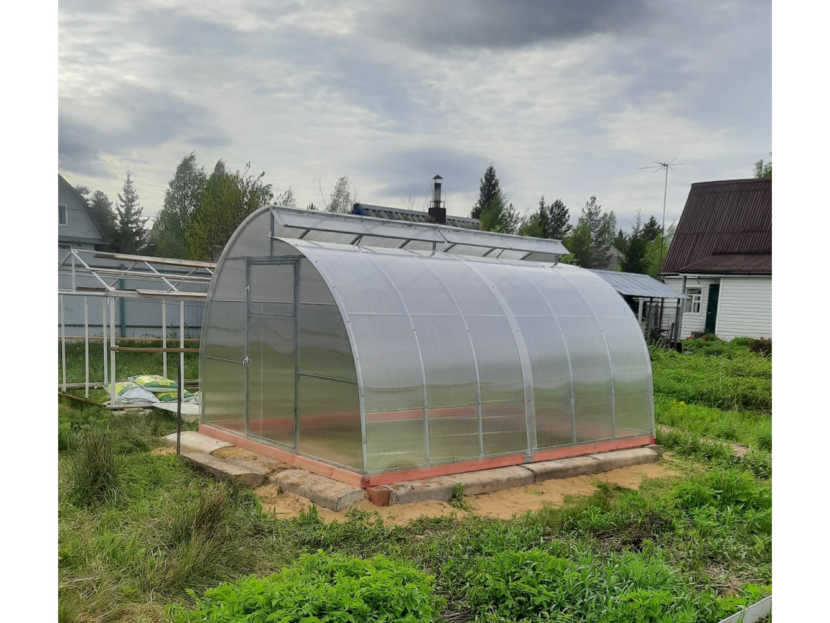 • длина фрамуги соответствует длине теплицы, высота 22 см, открывается изнутри и фиксируется в открытом состоянии с помощью ограничителя;